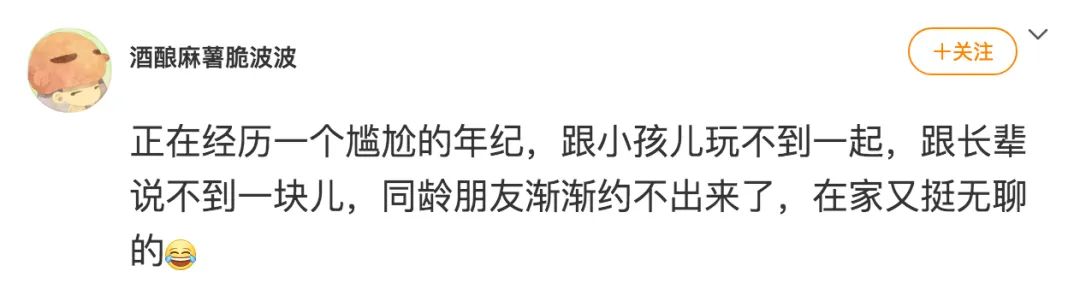 可不是嘛!同龄人都结婚生子约出来也说不到一块啦@游得快的_大鲨鱼