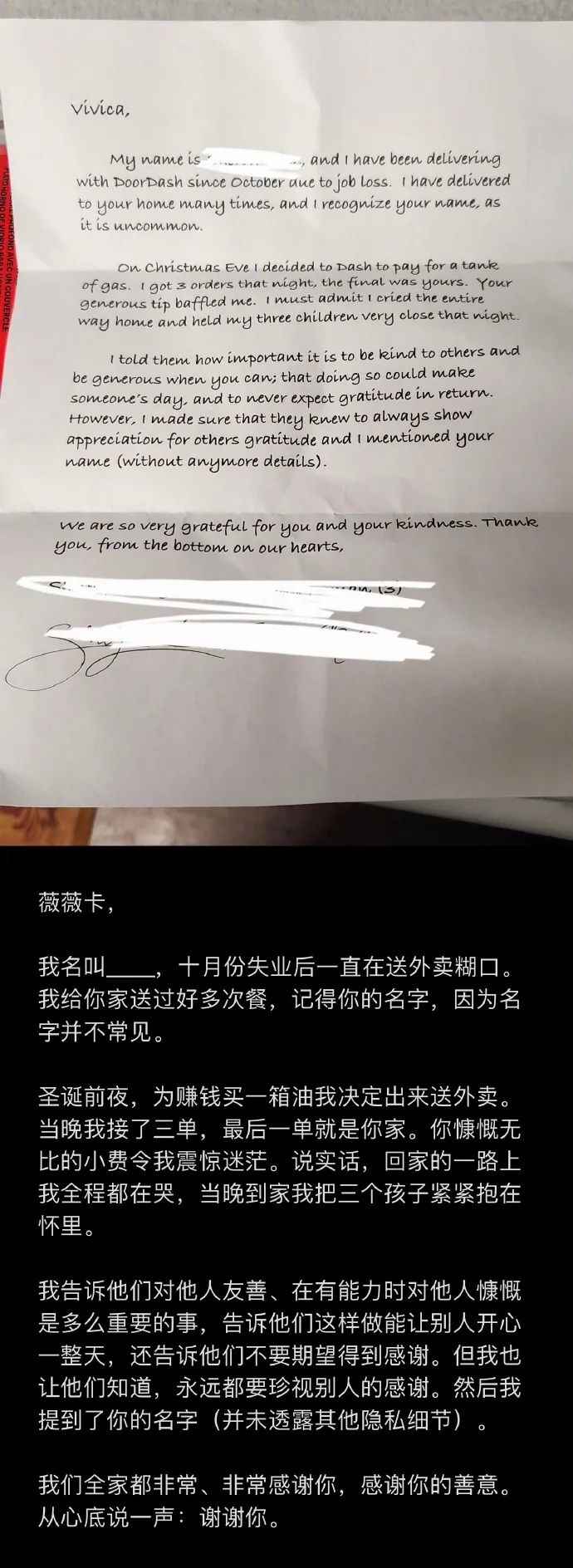 reddit网友在邮箱里发现来自外卖送餐员的感谢信 @southwesthex