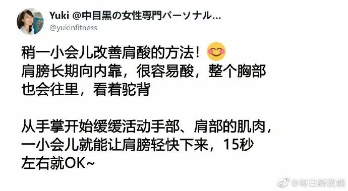 15秒放松肩部的方法,可以试着做起来了@Yflikex