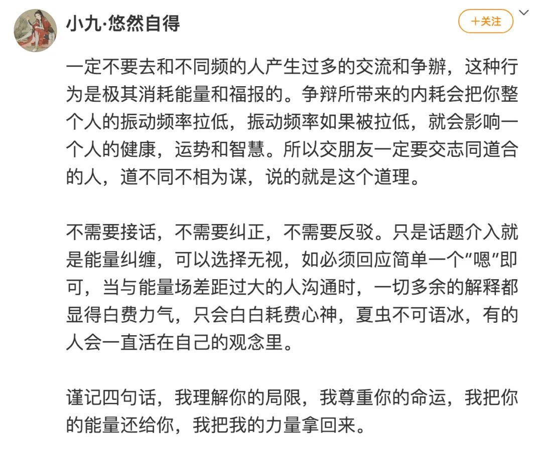 以后只和同频的圈子玩,不同频的人一键删除,无需解释,能量不对等,不用谁都理解自己。@今天独角兽再贩幽灵熊一代了吗